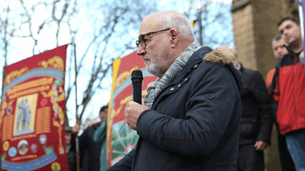 The TUC’s North East, Yorkshire & the Humber regional secretary, Dave Pike also addressed the rally. Representatives of other trade unions including Unite, the National Union of Mineworkers, and IGBE, the historical German Union of Mining and Energy (IG Bergbau und Energie) also attended.
